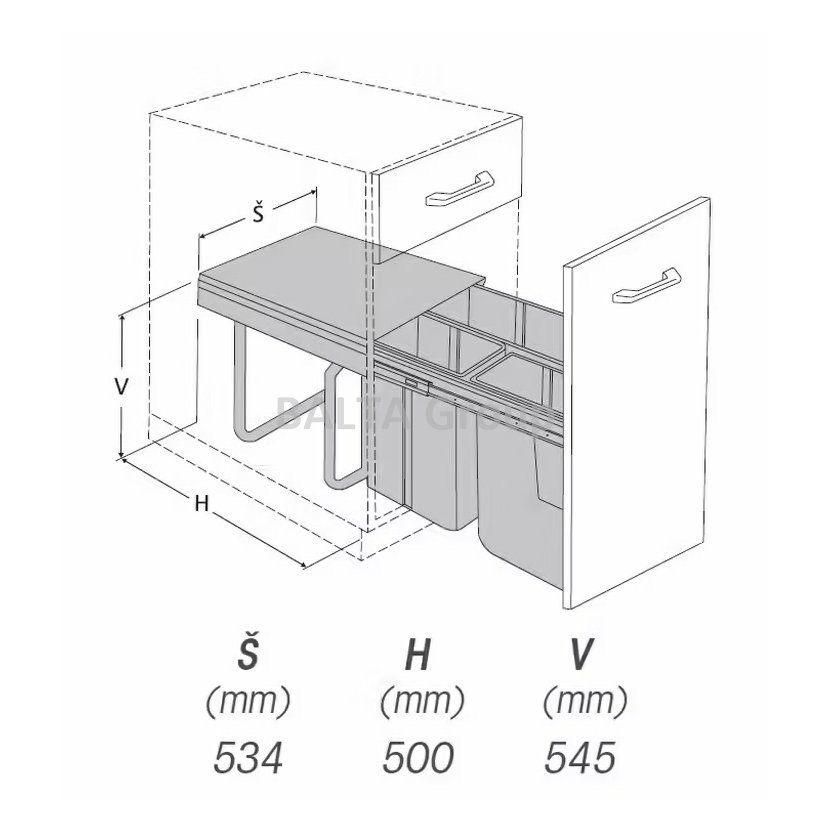 1007135602 Výsuvný odpadkový 3-koš Komfort + set pro úchyt dvířek, 1x34 l + 2x17 l, K60