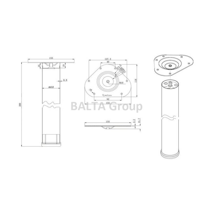 Nábytková noha kulatá o průměru 60 mm a výšce 200 mm promění Váš nábytek ve stylový designový kousek.