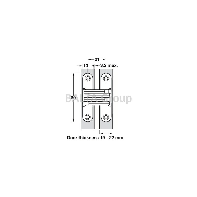 341.07.736 Závěs, skryté, pro bezfalcové vnitřní dveře