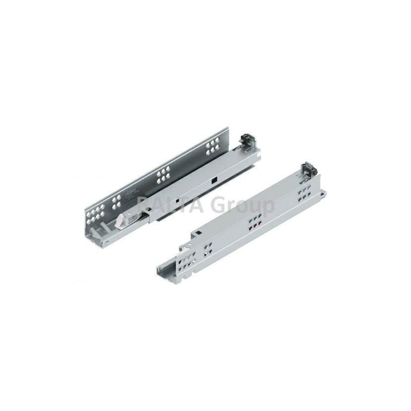 Skrytý celovýsuv TANDEM pro dřevěné zásuvky z materiálu o síle 11–16 mm s měkkým koncovým dorazem při otvírání a integrovanou funkcí TIP-ON, která zajišťuje mechanické otvírání. Plastové válečky, odolné proti opotřebení, zajistí lehký chod. Nastavení výšky bez nářadí spojkou. Vyrovnání tolerancí do stran a do hloubky. Doporučení: použijte synchronizační hřídel pro bezpečné spuštění nejen u širokých čel. Jmenovitá délka a nosnost viz název.