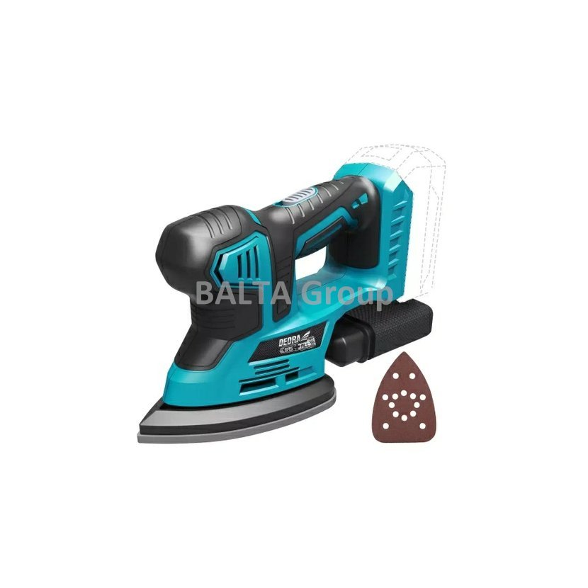 Technické údaje 18V akumulátorové delta brusky: Napětí-18 V Rozměry brusného papíru 140 x140x93 Počet kmitů za minutu-12000 Hmotnost - 1 kg Doporučená baterie: DED7032, DED7034, DED7035, DED6936, DED6937 Přibližná provozní doba baterie DED7032 2 Ah: 37 min Přibližná doba provozu pro baterii DED7034 4 Ah: 80 min Přibližná provozní doba pro baterii DED7035 5. 0 Ah: 100 min