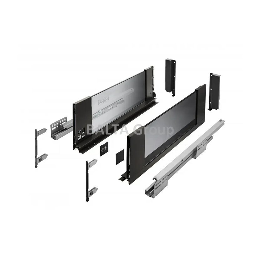 Zásuvka AXIS PRO se skleněnými bočnicemi má dlouhou životnost certifikovanou na 60 000 cyklů. Poskytuje plný výsuv v délkách od 300 do 550 mm a mechanismus měkkého zavírání zaručuje tichý chod a plynulé zavírání zásuvky. Díky 3 výškovým variantám se dokonale přizpůsobí vašim interiérům. Zásuvkové sklo AXIS PRO je tvrzené sklo , odolné proti poškození a snadno se čistí. S šířkou bočnice zásuvky pouhých 14 mm můžete maximálně využít vnitřní prostor skříňky. Hmotnost zásuvky umožňuje uložit do ní až 40 kg různých produktů. Zásuvky AXIS PRO se skleněnými bočnicemi jsou založeny na posuvných lištách AXIS PRO s měkkým dovíráním. Instalace je snadná díky pohodlnému nastavení zevnitř, nastavení sklonu a horizontálnímu nastavení v rozsahu +- 2 mm. Zásuvka je vhodná pro širokou škálu systémů řízení prostoru, příborových vložek, rohoží a třídičů odpadu.