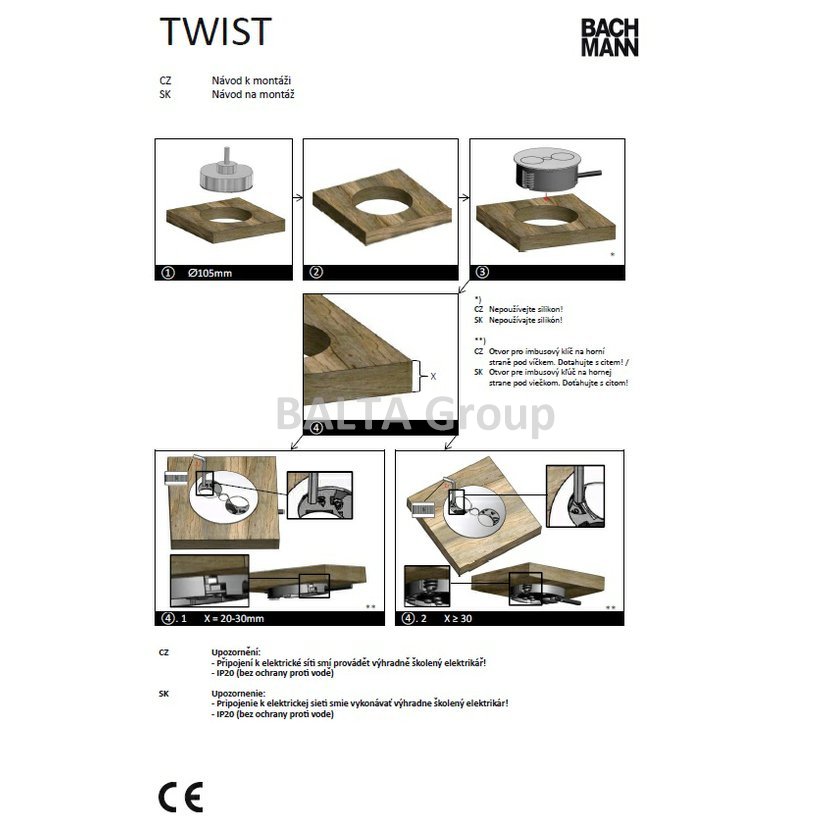 Otočná elektrická zásuvka Bachmann TWIST se dvěma zásuvkami je jako stvořená pro kuchyni či kancelář. Díky kompaktnímu designu a velmi nízké montážní hloubce ji lze snadno integrovat do kuchyňských linek či kancelářských stolů Možné varianty: ( v případě že nejsou v nabídce, napište do poznámky) Barva: nerez, černá mat, bílá mat