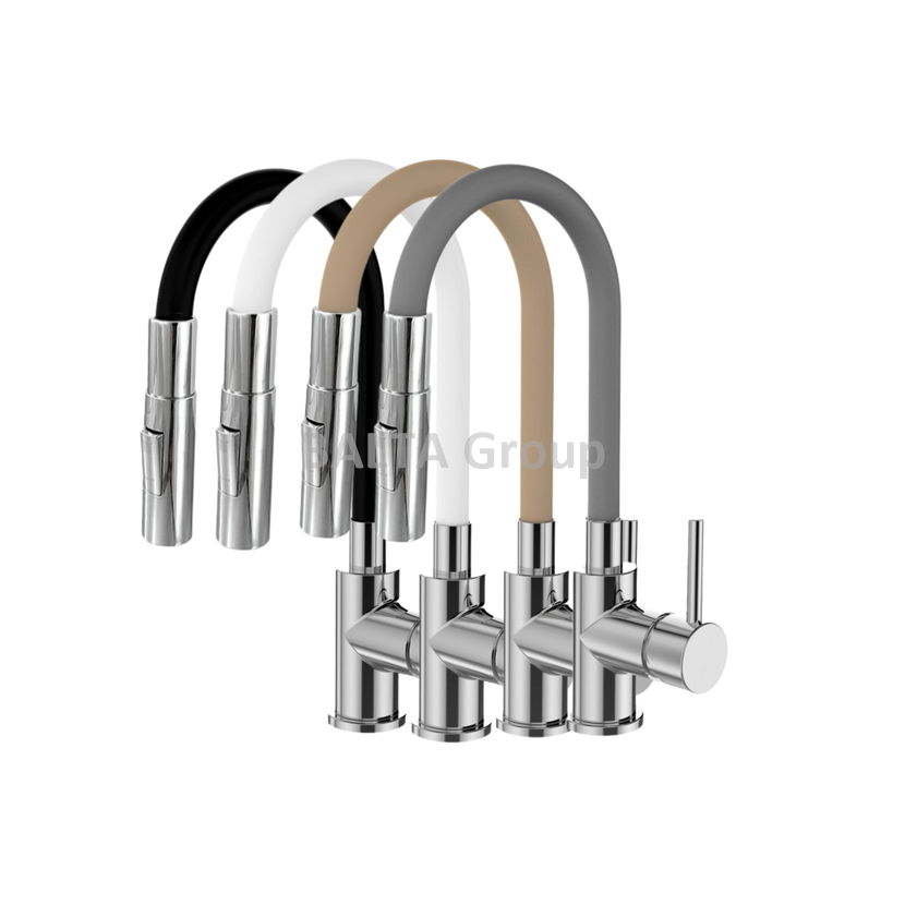 Dřezová stojánková vodovodní baterie s flexibilním (tvarovatelným) výtokovým ramínkem nabízí možnost "natvarovat" výtokové ramínko do co nejúčelnější polohy. Velmi praktickým konstrukčním vylepšením ramínka je dvoupolohová sprcha umístěná na jeho konci. Ramínko baterie je plně otočné (360°) Stejně jako ostatní pákové baterie má i tato svou nejdůležitější část – kartuši. Na té závisí plynulý chod vodovodní baterie (vypínání zapínání a smíchání teplé a studené vody) a proto velmi záleží na její kvalitě. V této baterii je kartuše osazena kvalitními keramickými destičkami, které zajišťují dlouhou a bezproblémovou životnost. Na kartuši se navíc vztahuje i prodloužená záruka 6 let.