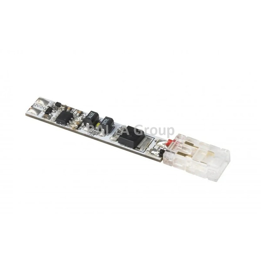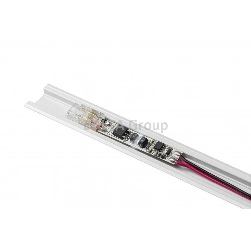 Bezkontaktní spínač pro montáž do profilu, z jedné strany je zakončen COB konektorem, který umožňuje rychlou instalaci COB pásky do spínače. Podporuje pásové sekce o výkonu nejvýše 60W pro 12V a 120V pro 24V. Má funkci stmívání. Připravenost k provozu je indikována diodou. Usnadňuje také nalezení vypínače v noci. Nepřipojujte živý spínač. První spuštění by mělo proběhnout s nasazeným krytem.