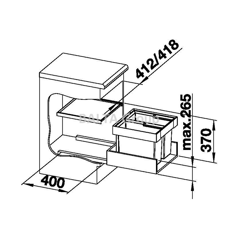 - výška zabudování 370 mm od dna zásuvky, hloubka zabudování 400 mm