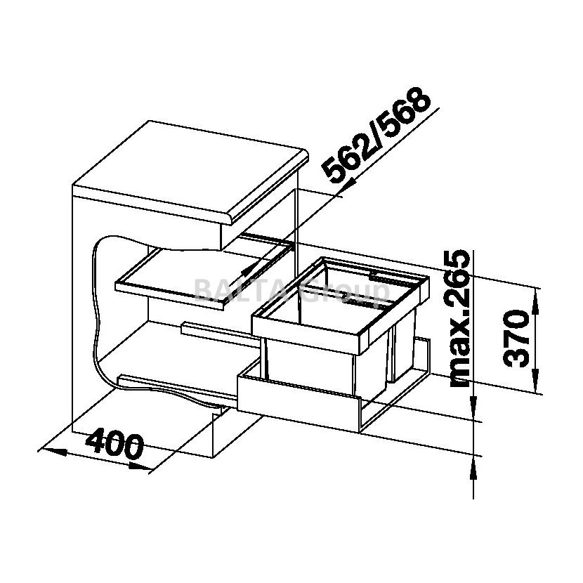 - výška zabudování 370 mm od dna zásuvky, hloubka zabudování 400 mm