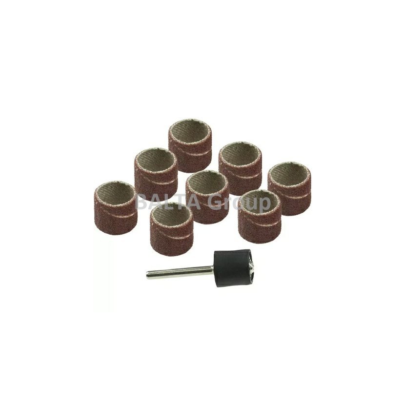 Sada 9 kusů pro mini brusky, přesné ruční brusky. Sada se skládá ze 4 brusných pásů se stupnicí K60 a 4ks se stupnicí K120. Pásové válce jsou namontovány na trnu o průměru 3,2 mm. Umožňují přesné obrábění malých předmětů nebo povrchů. Sada doporučená pro brusky DEDRA DED7946Z1, DED7944Z2, DED6903.