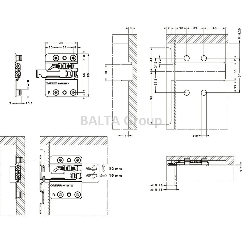 CAMAR 807RV spodní závěsné kování ocel pozink |pravé
