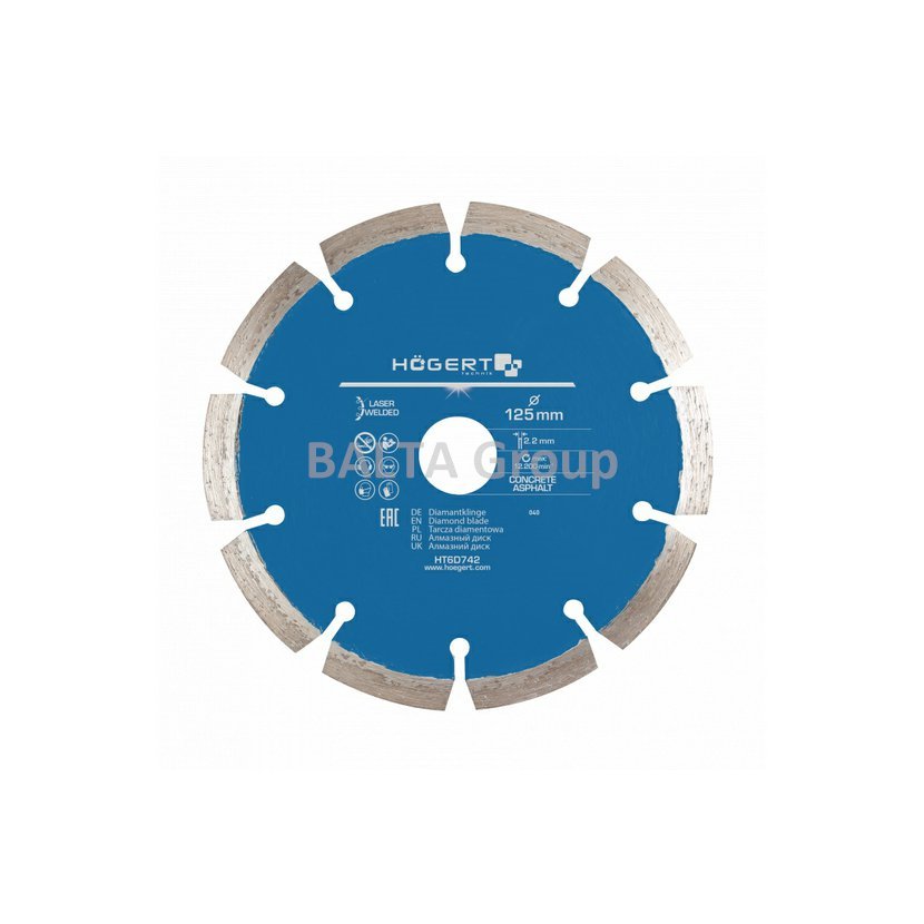 Laserem svařované diamantové kotouče pro úhlové brusky a řezací stroje. Určeno pro suchý provoz. Pro řezání stavebních materiálů jako je asfalt, cihly, kabřinec, železobeton, dlažební kostky, keramické dlaždice atd.