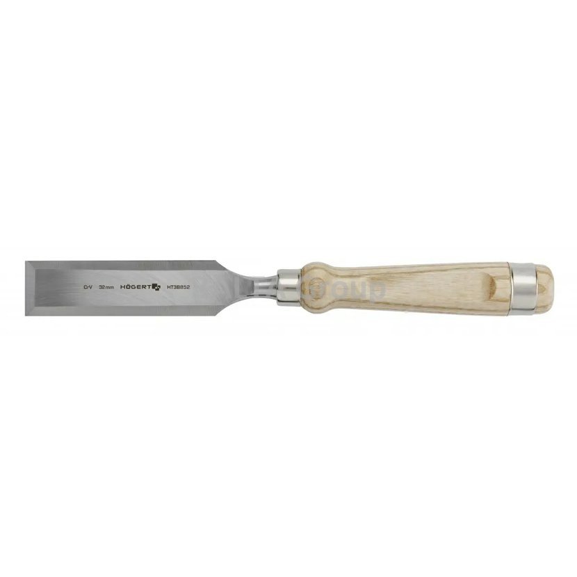 Kalené a broušené zkosené hrany. Rukojeť z jasanového dřeva vyztužená dvěma ocelovými kroužky. Ergonomická, tvarovaná rukojeť pro pohodlné uchopení.