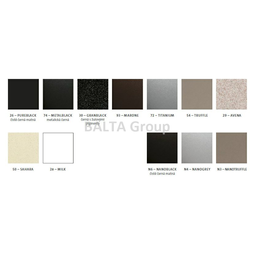 Konstrukční typ Dřezy s krátkým odkapem Spodní skříňka 500 mm Vnější rozměry 650 x 500 mm Rozměry vany 380 x 430 mm Hloubka dřezu 200 mm Výpust 3 1“ Orientace Otočný Typ montáže Horní Odstín šedé/černé Barva N6 , N4 Modelová řada Sinks TELMA Záruka 10 let Hmotnost 12,50 kg