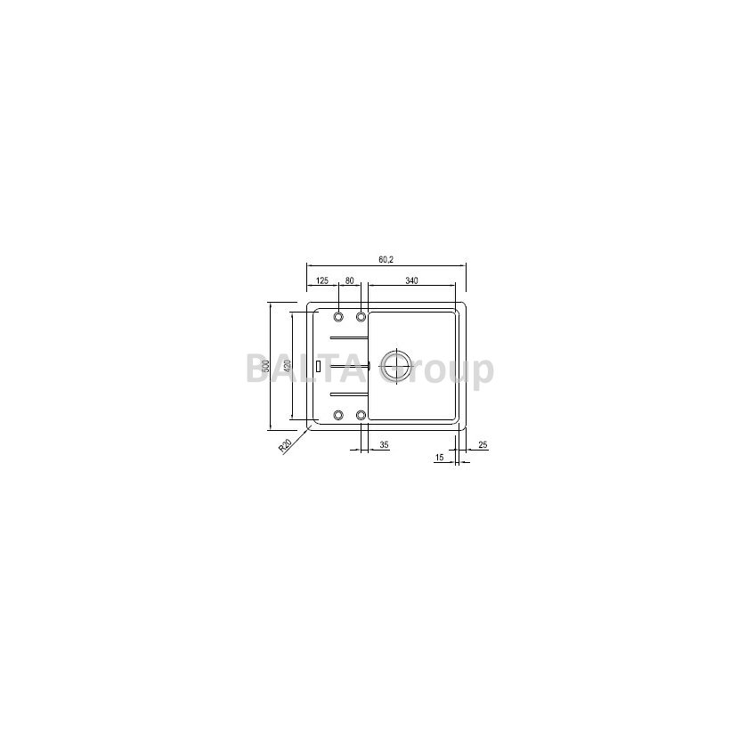 Spodní skříňka od 450 mm Rozměry: 620 × 500 mm Výřez: 600 × 480 mm (Rádius 20 mm) Dřez: 340 × 420 × 200 mm