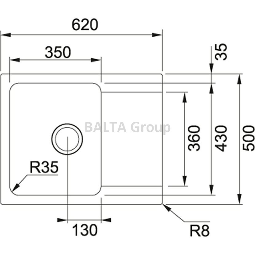 620 × 500 mm výřez: 600 × 480 mm dřez: 350 × 430 × 180 mm