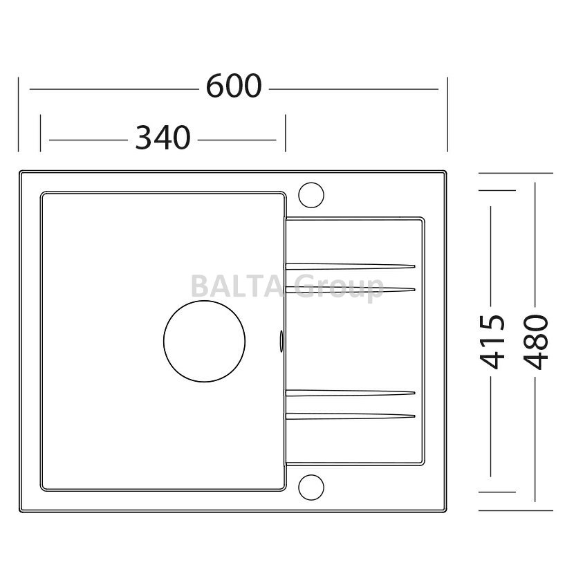 dřez LINEA 600 barva 30+ baterie ELASTA nerez/černá