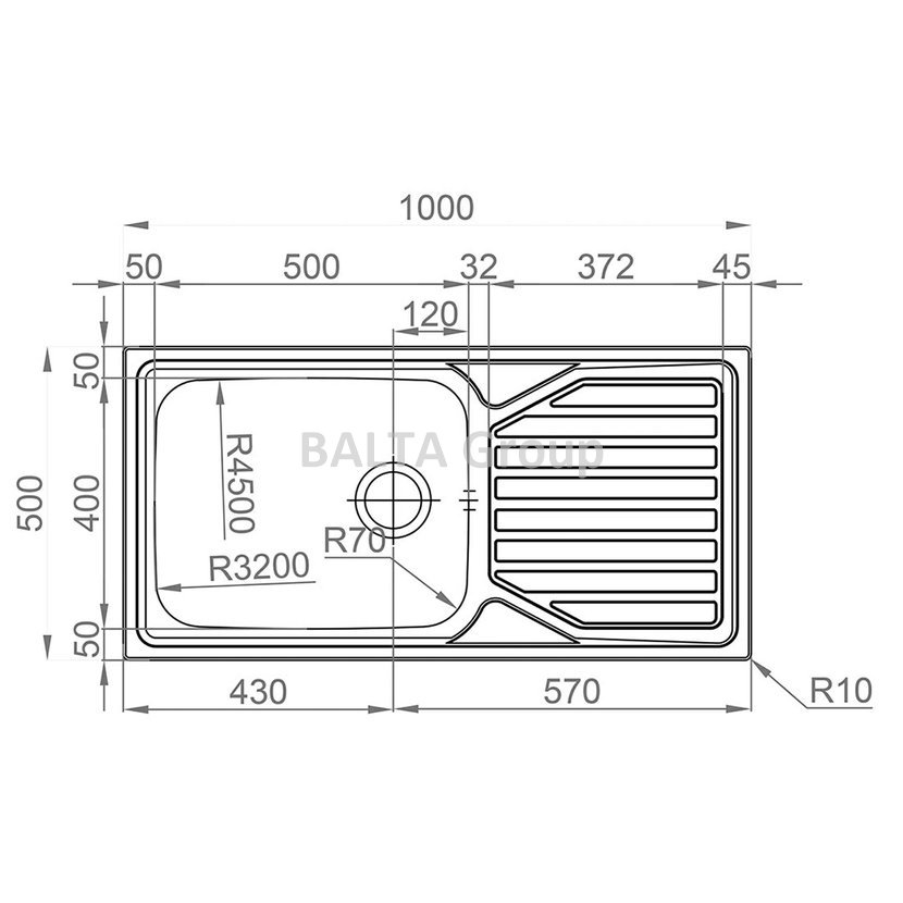 Konstrukční typ Dřezy s odkapem Spodní skříňka 600 mm Vnější rozměry 1000 x 500 mm Rozměry vany 500 x 400 mm Hloubka dřezu 200 mm Výpust 3 1“ Orientace Otočný Typ montáže Horní Povrch Leštěný Tloušťka materiálu 0,7 mm