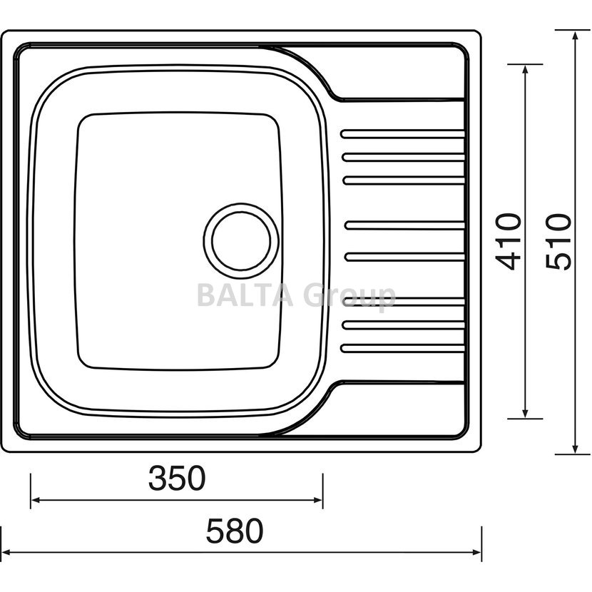 Konstrukční typ Dřezy s krátkým odkapem Spodní skříňka 450 mm (400 mm po úpravě skříňky/bez baterie) Vnější rozměry 580 x 510 mm Rozměry vany 350 x 410 mm Hloubka dřezu 170 mm Výpust 3 1“ Orientace Otočný Typ montáže Horní Povrch Matný Tloušťka materiálu 0,6 mm