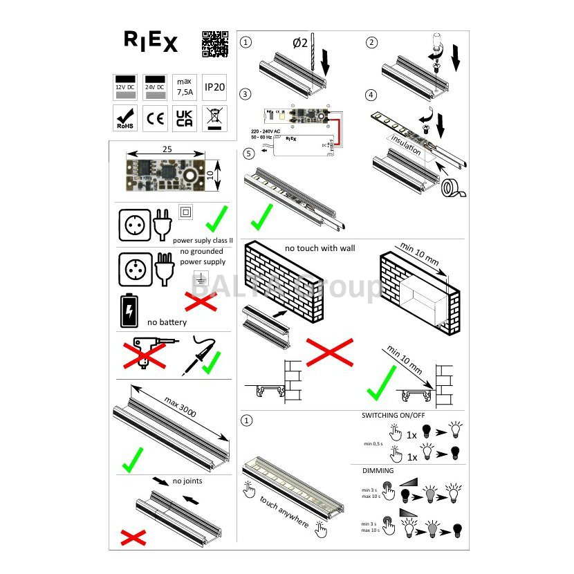 EC51 Dotykový vypínač do LED profilu, 12/24 V, 90W,