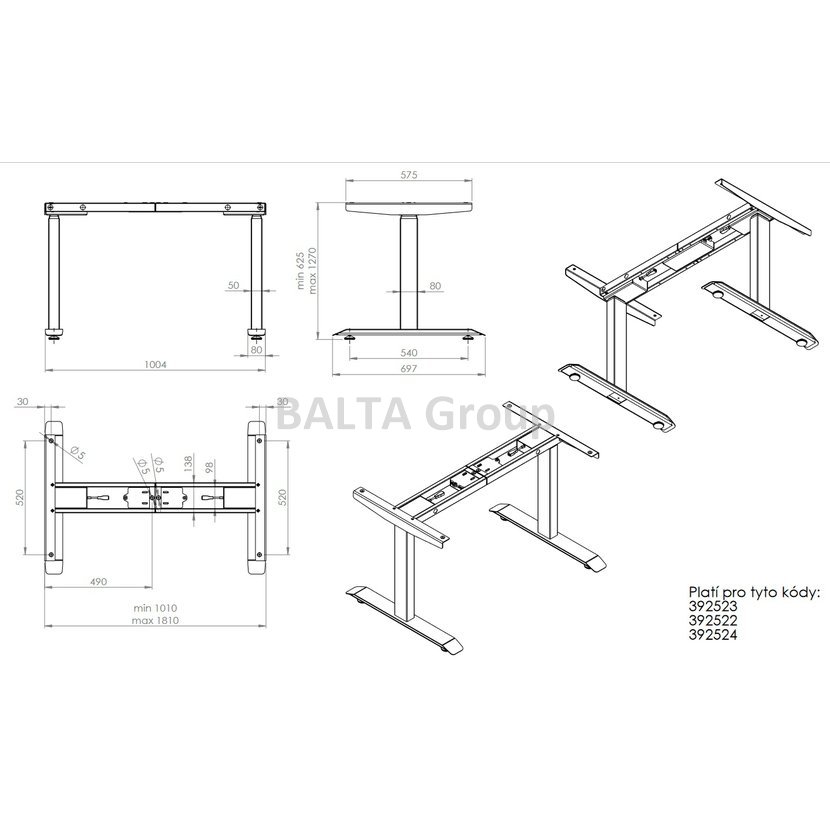 Barva černá RAL 9005 mat V balení jsou 2 nohy (3segmentová, profil 80 x 50 mm, 2 motory), paměťový ovladač - 4 paměti, digitální ukazatel výšky, tlačítka nahoru a dolů Výšková stavitelnost 625 - 1280mm Doporučené rozměry desky: Délka 1200 - 1800 mm, hloubka 600 - 800 mm Pro tloušťku desky 15 - 25 mm Nosnost 120 kg Chytrý výrobek: Výborné spojení ceny a kvality. 4 paměti nastavené výšky, v nabídce v několika barevných provedeních, rovné i rohové řešení, vysoká nosnost 120 kg, zdvih 63 cm!