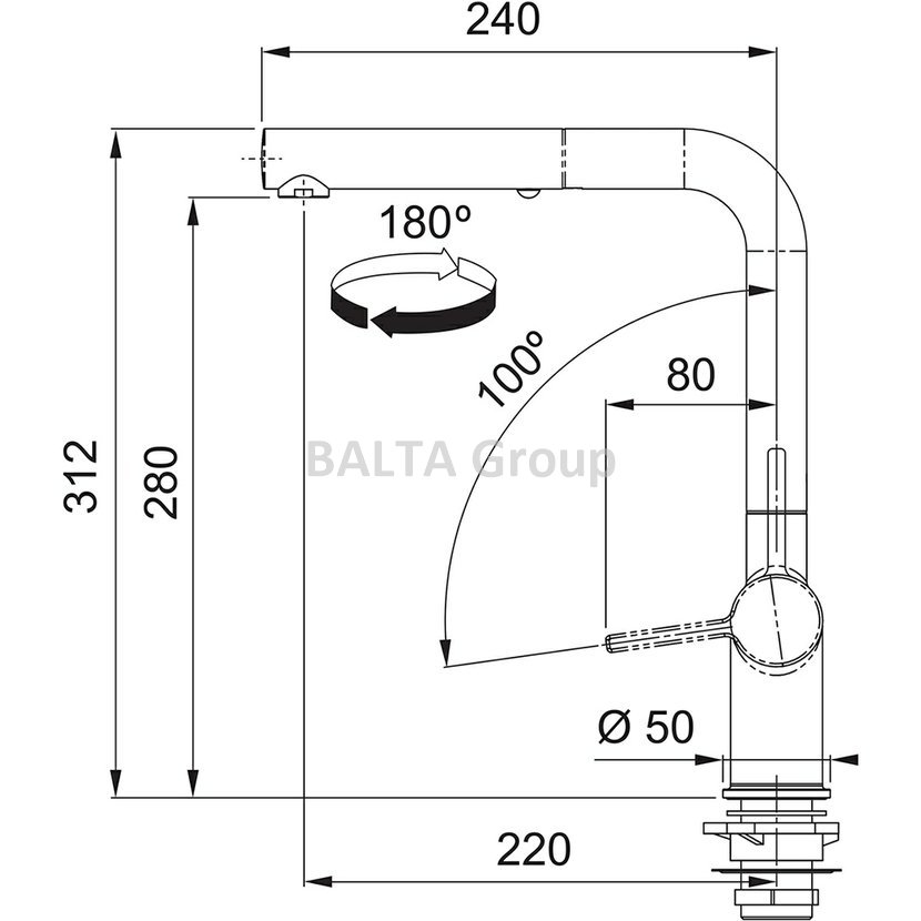 Páková směšovací Tlaková Otočná 180° S vytahovací koncovkou osazenou perlátorem S regulací Sprcha/Proud Opletená sprchová hadice 150 cm Připojení: Hadičky 55 cm Průtok vody: 7,5 l/min. (3 bar) Laminární průtok vody Technologie pro úsporu vody ECO kartuše