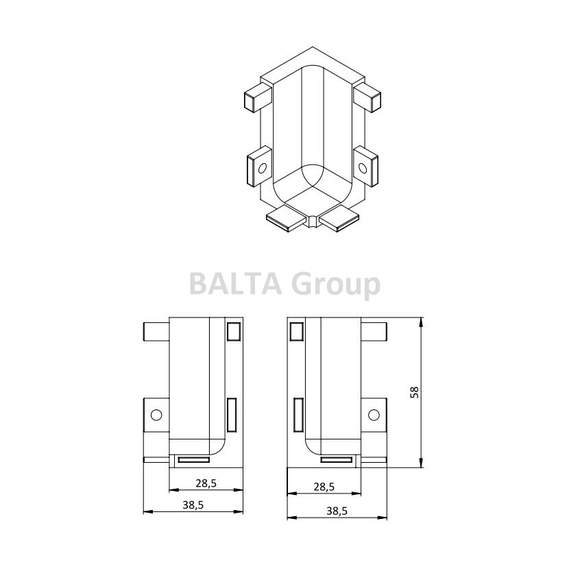 Gola vnitřní roh dvířkového L profilu
