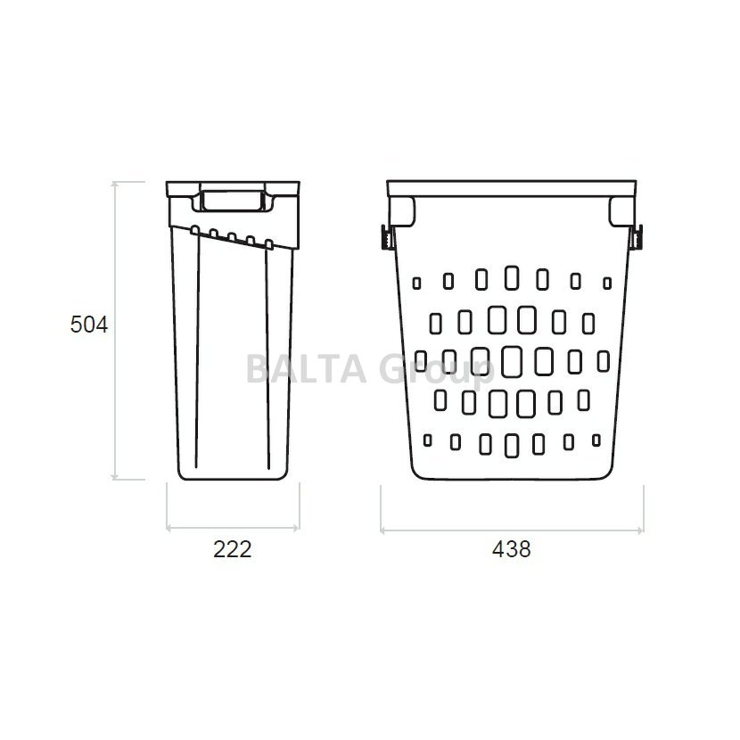 Výklopný prádelní koš do skříňky 500 mm, hloubka koše 222 mm, obsah 40 L, bílý, obsahuje kování pro připevnění koše Nutno dokoupit miskový závěs a výklop DUO