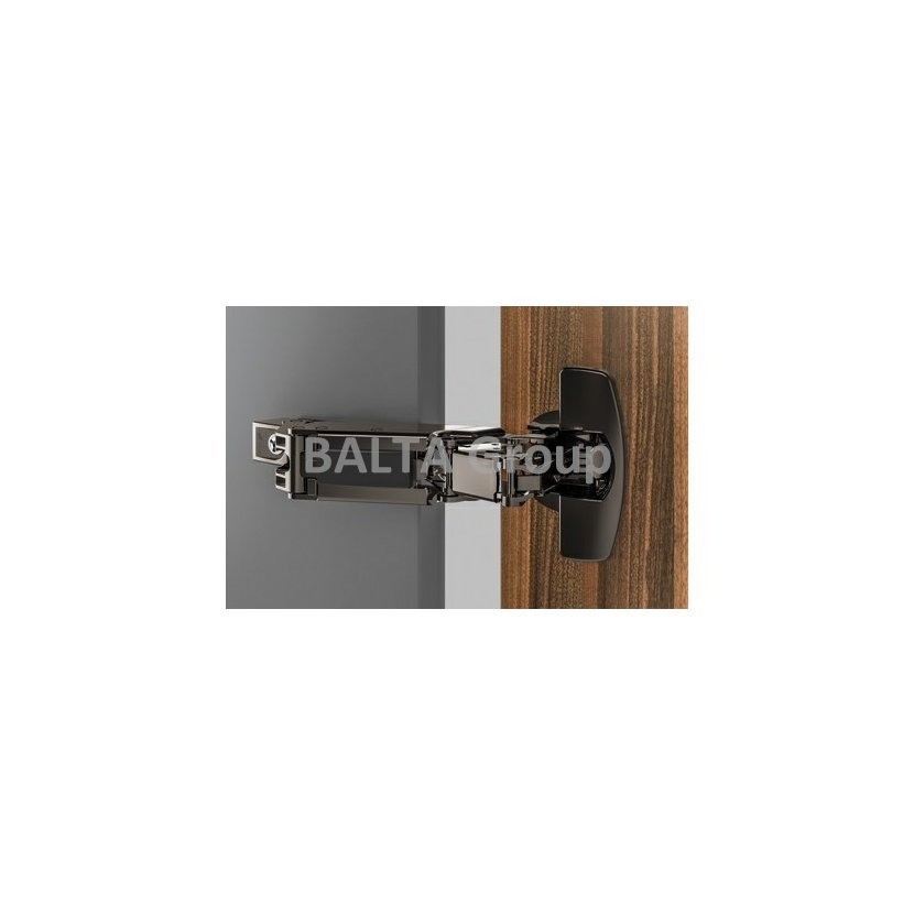 Závěs 165° s klipovou technikou s integrovaným tlumením, naložený. Kvalita v souladu s EN 15570, úroveň 3. Pro tloušťku dveří 15 - 32 mm. Průměr misky 35 mm. Hloubka misky 11,6 mm. Integrované seřízení naložení + 2 mm, - 2 mm. Integrované seřízení hloubky + 3 mm, - 2 mm. Seřízení výšky montážní podložkou. Úhel otevření je možno zmenšit pomocí volitelného příslušenství. Závěs s nulovým přesahem. Všechny viditelné části v barvě černý obsidián.