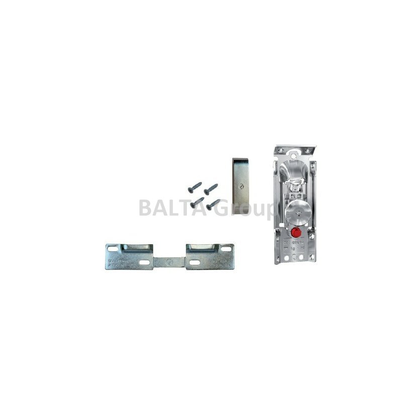 Rektifikační kování pro pravou i levou stranu, ukryté za zadní stěnou skříňky, viditelná z čelní strany je jen krytka 54.5x12mm (). Montáž pomocí vrutů do stěny a půdy korpusu. Zajišťovací šroub proti vysazení skříňky ze závěsného profilu. Možnost horizontálního i vertikálního nastavení. Sada obsahuje jeden pár kování + šablonu pro vrtání, či frézování krytky, závěsné plechy a vruty do korpusu.