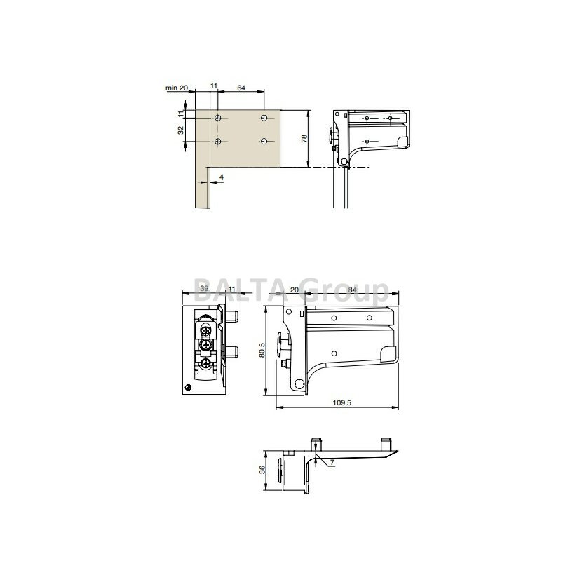 Sada závěsného kování pro zavěšení skříňky na stěnu s vysokou nosností. Systém LIBRA H7 je možno použít také pro zavěšení spodních skříněk, které obsahují na příklad zásuvky. Součástí sady je pár závěsného kování a závěsný plech na stěnu. Pro zvýšení nosnosti je možno dokoupit ještě nosný profil pro LIBRA H7. Kování má rovněž ochranu proti vysazení skříňky ze závěsného plechu.