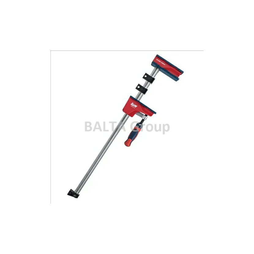 Čelisti z uhlíkové oceli jsou hluboké 90 mm, udržují konstantní úhel 90° i při zatížení a rovnoměrně roznáší tlak po celé upínací ploše. Čelisti jsou osazené plastovými kryty s velkou upínací plochou o šířce 47 mm, které je chrání proti lepidlu stékajícímu z lepeného dílce a které zároveň zabraňují poškození stahovaného materiálu. Odnímatelná spodní čelist umožňuje svěrku přeměnit na rozpěrku. Patentovaný protiskluzový posuv čelisti po tyči zajišťuje pevné zafixování v potřebné poloze.