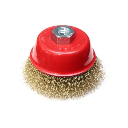 Tupý drátěný kartáč má závit M14 a je určen pro použití s úhlovými bruskami. Používá se k odstraňování otřepů, starých nátěrů, čištění, matování materiálů, jako je ocel, konstrukční ocel, dřevo.