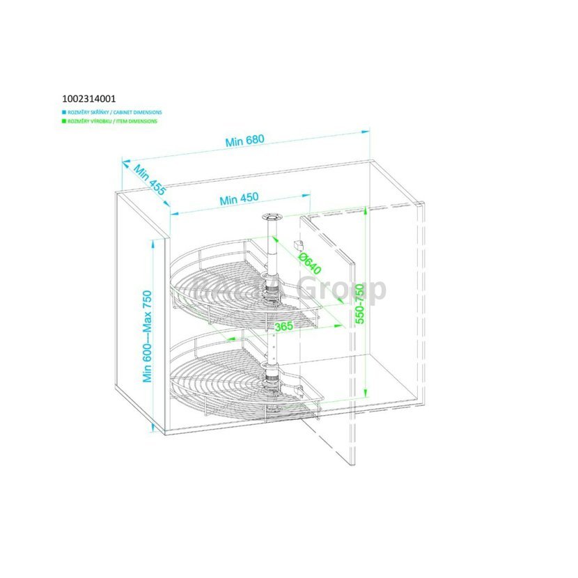 Karusel 180° WIRELI Komfort, 610x695-770 mm, chrom (1002314001)