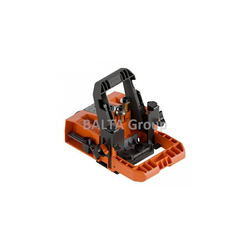 ECODRILL přináší následující nové funkce: – upínání jednou rukou – pohodlné nastavování tloušťky materiálu (až 40mm) – pohodlné nastavení vyvrtání otvorů a odstupu misky od hrany dvířka (2-8mm) – boční zarážky pro nastavení standardních vzdáleností (80-130mm) – možnost odsávání pilin při vrtání (přípojka 30–42mm/44–46mm) – integrovaná úhelníková šablona pro průběžnou montáž závěsů