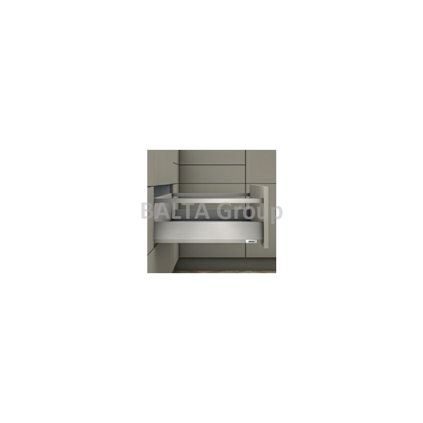 kompletní kování pro zásuvku výšky - reling -E set obsahuje: 1pár- výsuv, 1pár- bočnice, 1pár – držák zad, 2ks- čelní držák na vrut, 2ks- čelní uchycení pro reling, 1pár-reling, 2ks- krytka pro držák zadní stěny.