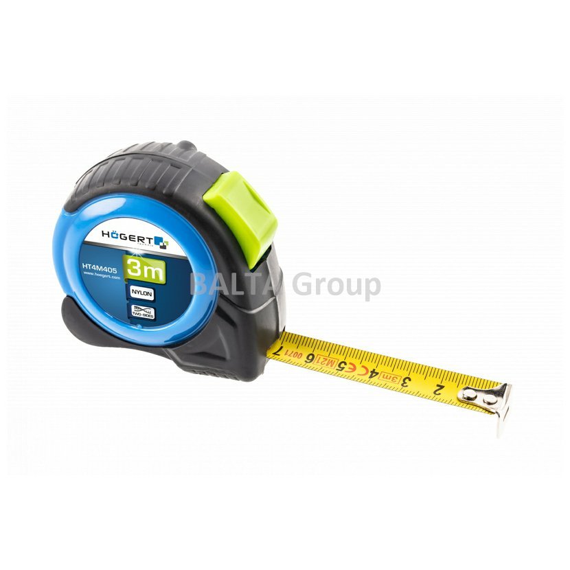 ¦ II. třída přesnosti; ¦ vyrobený v souladu se směrnicí EU o měřicích přístrojích (MID); ¦ ocelová páska o tloušťce 0,12 mm, potažená nylonem, který zvyšuje životnost a odolnost potisku proti oděru; ¦ mechanismus automatického navíjení pásky; ¦ oboustranná páska potištěná vodorovně a svisle, zvláště užitečná pro měření vertikálních prvků; ¦ upevnění závěsu zesílené dvěma nýty (HT4M405 a HT4M406) nebo třemi nýty (HT4M407); ¦ prvky krytu vyrobené z protiskluzového materiálu, umožňující pohodlné uchopení; ¦ praktická spona na opasek.