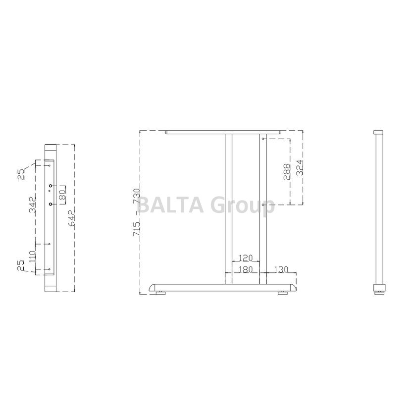 Podnož G2 ST 201 E Podnož stolu (profil spodní základy 50x30 mm) do hloubky desky 700 – 800 , spojení podnoží pouze za pomocí dřevěného lubu Rozměry: 650x715–730H Barvy: Stříbrná RAL 9006 – skladem u dodavatele Antracit RAL 7012 – skladem u dodavatele Bílá RAL 9016 – dodání do 5 týdnů Černá RAL 9005 – dodání do 5 týdnů