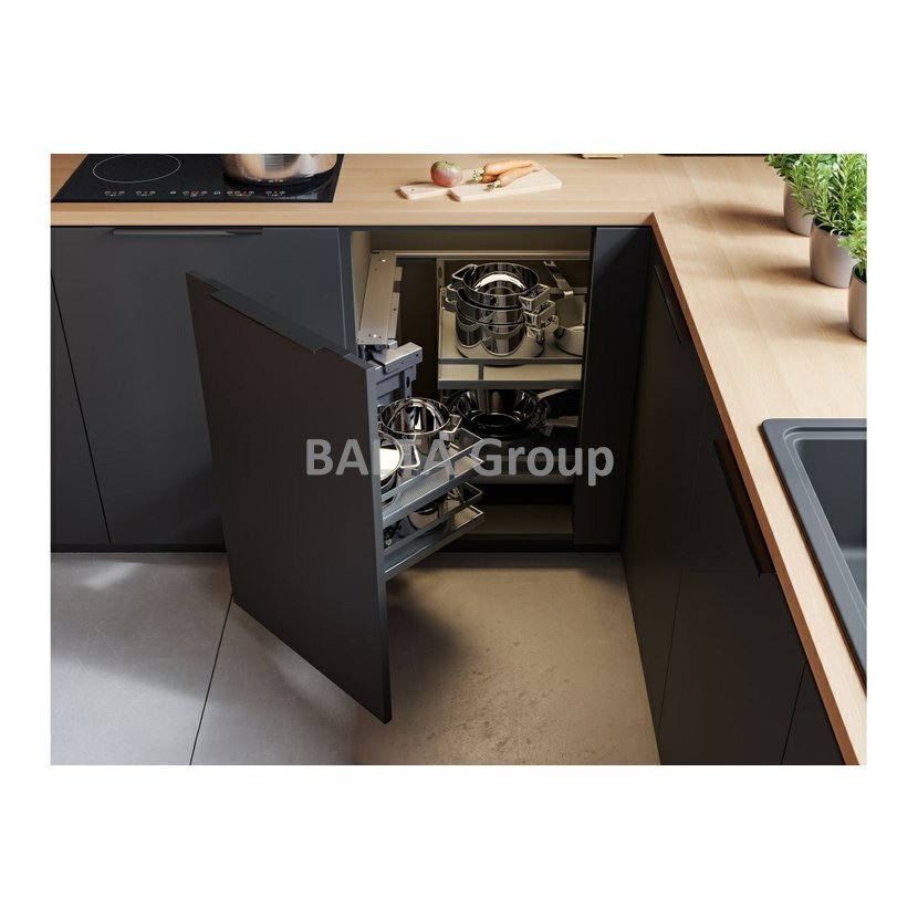 - pravolevý - pro skříň o šířce 900mm s čelem 450mm - vyhrazená přední montáž s nastavením ve třech rovinách - nosnost 8kg / police - tlumič, který při zavírání zpomaluje - produkt je v chromu, dna mají antracitovou protiskluzovou podložku