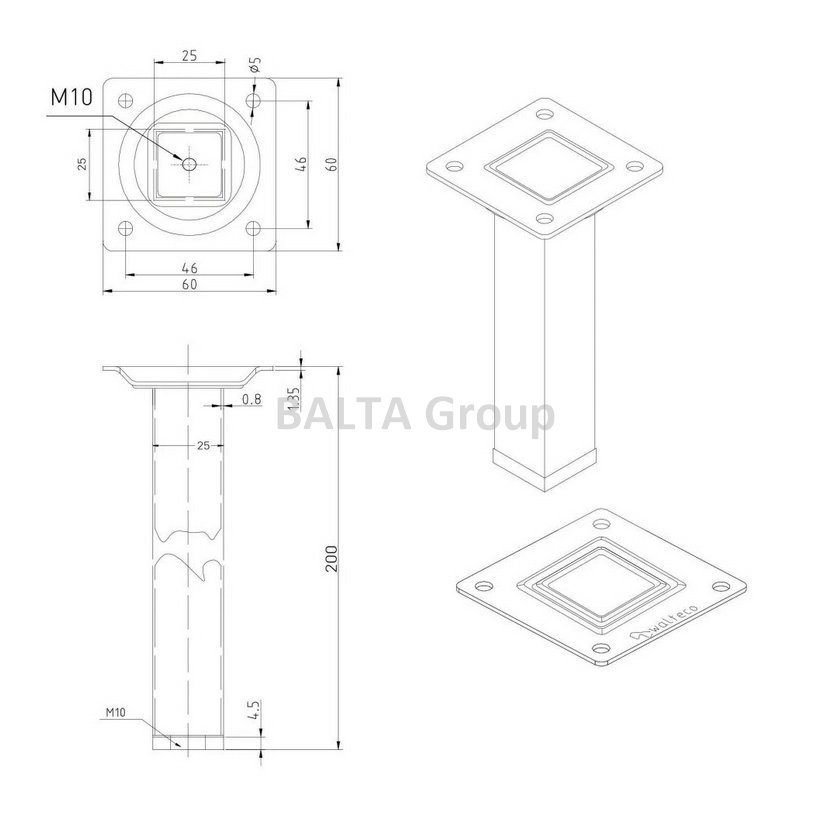 Hranatá kovová nábytková noha černé barvy v profilu 25x25 mm s výškou 100 mm, plotnou 60x60 mm a spodním plastovým kluzákem. Hranatá ocelová nábytková noha v černém provedení dodá vašemu nábytku elegantní industriální vzhled. V případě nerovných povrchů nebo podlah doporučujeme přikoupit nastavitelný šroub se závitem M10. K nábytku se připevňuje vruty, které si u nás můžete zakoupit v kategorii vruty pro nábytkové nohy. Další varianty výrobku: viz.tabulka –( poptejte u prodejce)
