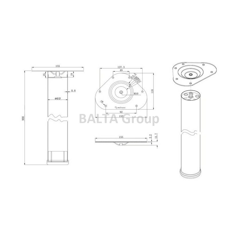 Nábytková noha kulatá, průměr 60mm, výška 900mm