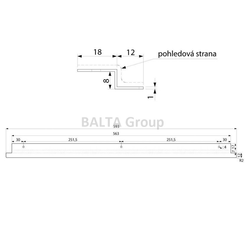 délka lišty 593mm, použití spodní korpus š.600mm, dekor: nerez broušený.