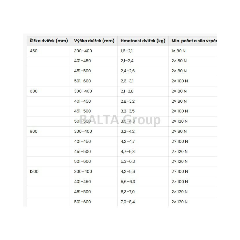 Plynový výtah umožňuje navrhnout funkční a moderní horní skříňky. Zvedák zajišťuje plynulost a tlumení při otevírání skříněk. Jeho mechanismus zabraňuje inertnímu sestupu přední části. Vyrobeno z šedé oceli. Přibližný úhel otevření je 75-100° v závislosti na použitém závěsu. Lze jej použít jak pro pevná čela, tak pro čela z hliníkových profilů. K dispozici je 6 variant pevnosti produktu. Při montáži vyžaduje použití závěsů.