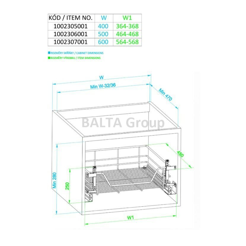 Plnovýsuvný koš boční WIRELI Komfort s tlumeným dovřením,364x450x250mm,chrom (1002305001