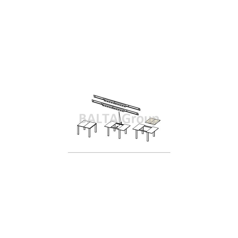 Robustní výsuv pro roztahovací stoly s vlastním rámem. Vnější profily jsou ocelové, vnitřní ze slitiny hliníku. Výsuvy jsou vybaveny synchronizací pro snadnější a přesné rozkládání stolu a brzdou, která zabraňuje nechtěnému posuvu stolové desky.