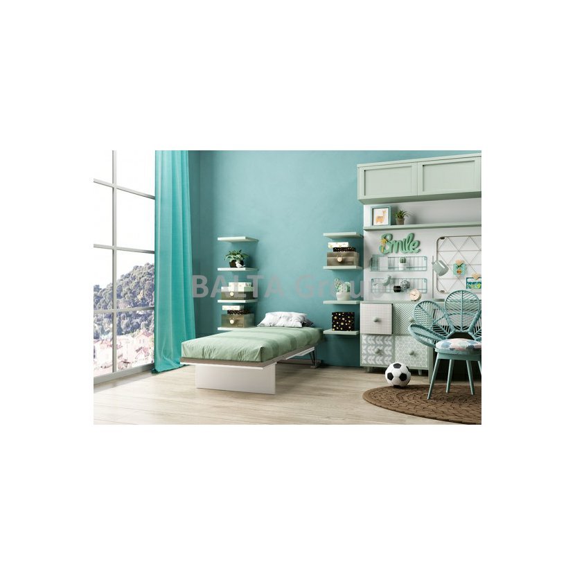 Sklopné postelové kování Speedy wall. Dřevěné části nutno vyrobit (krycí deska roštu viditelná v zavřené poloze). K použití tohoto kování není nutné vyrobit korpus. Matrace není součástí balení. Součástí postelového kování je: • kovový rám postele s lamelami z bukového dřeva • sklopný mechanismus s amortizovanými písty • nastavitelné nohy • podstavec pro upevnění na stěnu • bezpečnostní zámek Doplňkové informace: • Snadná montáž, v případě mechanismu Speedy Wall bez nutnosti použití korpusu • Hladké otevírání pomocí tlumiče a snadné zavírání • Nastavitelné nohy • Bezpečný systém, patentováno • Minimální hloubka skříně • Mezera mezi korpusem s postelí je široká jen 4 mm • Volitelná nabídka příslušenství • Nosnost 150 kg (jednolůžko), 200 kg (dvojlůžko) • Vysoká kvalita použitých materiálů, CATAS certifikát • 5 letá záruka na funkčnost a vlastnosti mechanismu