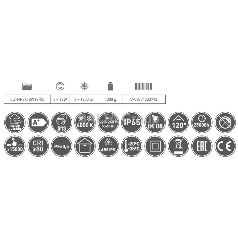 Prachotěsné LED svítidlo -120cm- IP65 3600lm