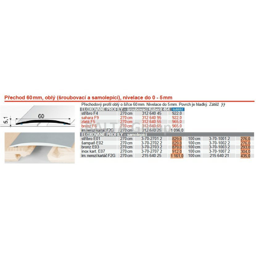 přechod profil 60mm oblý | elox -100cm / samolepící