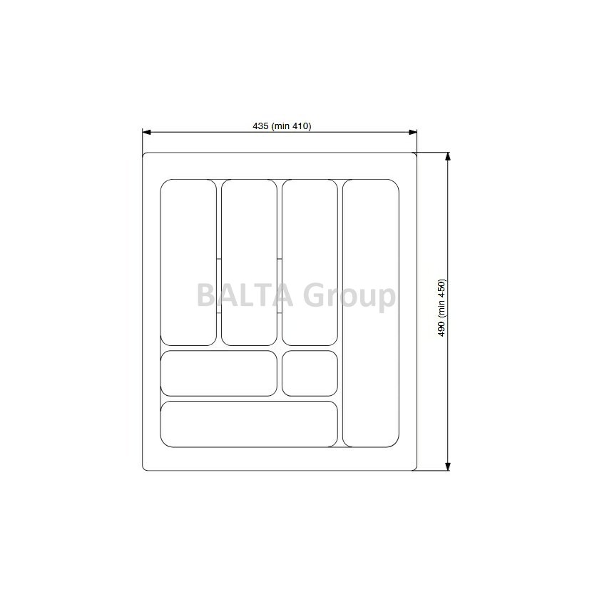 VNĚJŠÍ ROZMĚR 490X435, MOŽNO OŘÍZNOUT NA 450X408. SÍLA MATERIÁLU 2,5 MM. 7 PŘIHRÁDEK