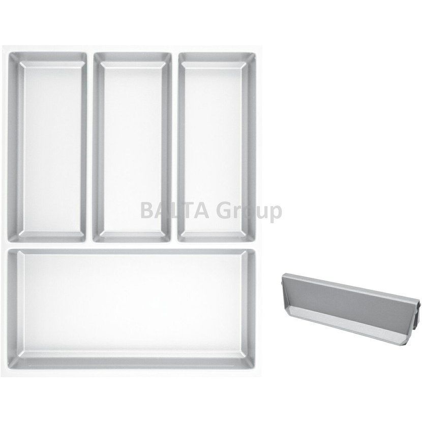 Vložka příborníku SKY pro různé typy zásuvek. Kombinace pevných přihrádek a pohyblivých přepážek (k dokoupení zvlášť). Pro různé typy zásuvkových systémů - StrongMax, Legrabox, nebo i jiné typy (možno zúžit a zkrátit). Barva antracit. Chytrý výrobek: Příborníky jsou rozměrem připraveny pro zásuvky s tenkými bočnicemi (StrongMax, Blum Legrabox). V rozměrech od 40 do 1200 mm šířy skříňky. Lze je vzájemně kombinovat a spojovat (spojovací profil). K bočnici přilehnou přesně díky ukončovacímu profilu. Je tu i možnost doplnit o držák nožů, řezačku folii a také o další posuvná dělítka pro personalizaci podle přání zákazníka. (barva BÍLÁ + 1 dělítko)
