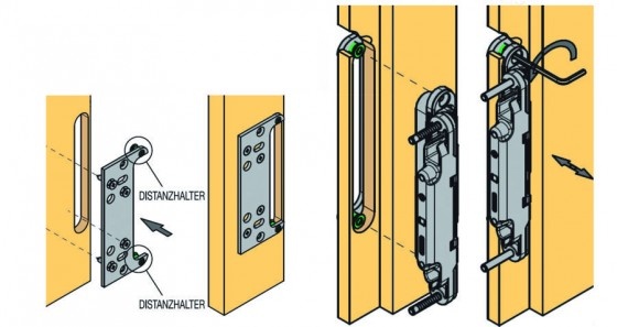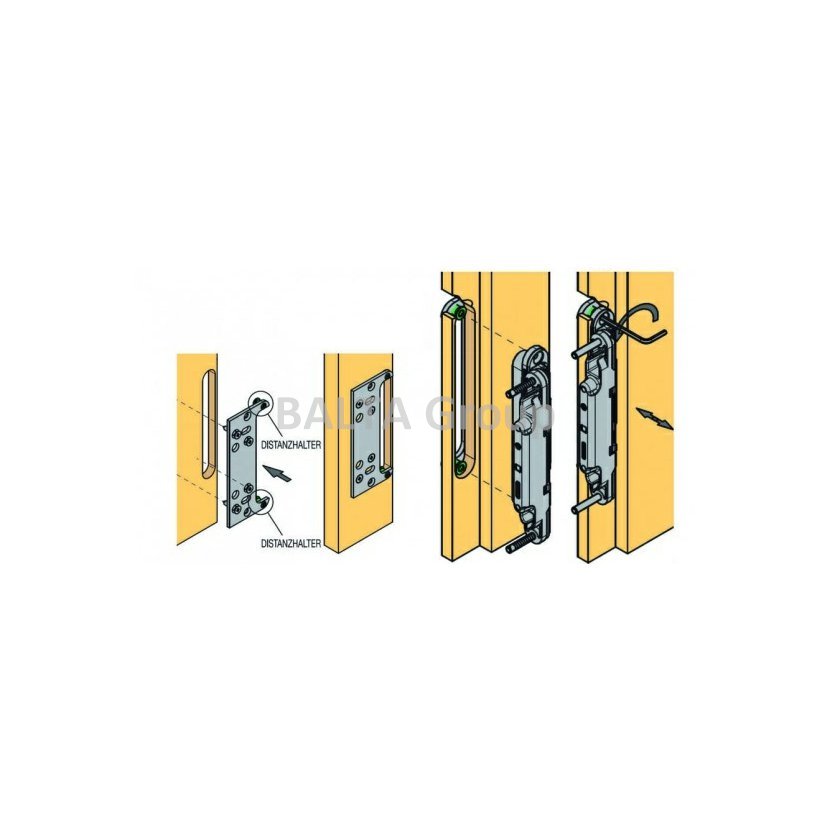 Příchyt závěsu K2400 pro obložkové zárubně s distančním šroubem.