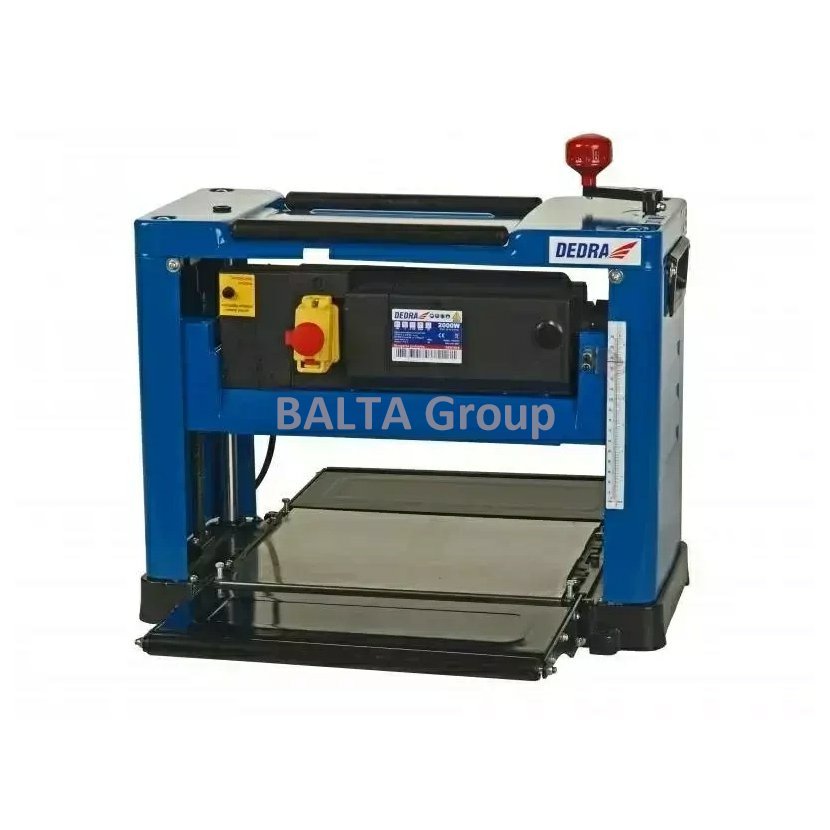 Tloušťkovačka DED7814 je stroj proo p r acování masivních dřevěných dílců, jako jsou prkna, latě a trámy.N a tomto stroji se dřevoz p racovává tak, aby vznikly obrobky určité tloušťky a povrchové úpravy. Stroj je vhodný pro použití v profesionálních truhlářských dílnách i v garáži nadšených kutilů. Stroj je vybaven odsavačem třísek, který zajišťuje plynulý provoz bez možnosti zablokování nože stroje třískami během práce. Tloušťku odebraného materiálulze nastavit v rozmezí 0-2,5 mm. Kromě toho je stroj vybaven vypínačem zátěže, který vpřípadě přetíženístroj automaticky vypne.